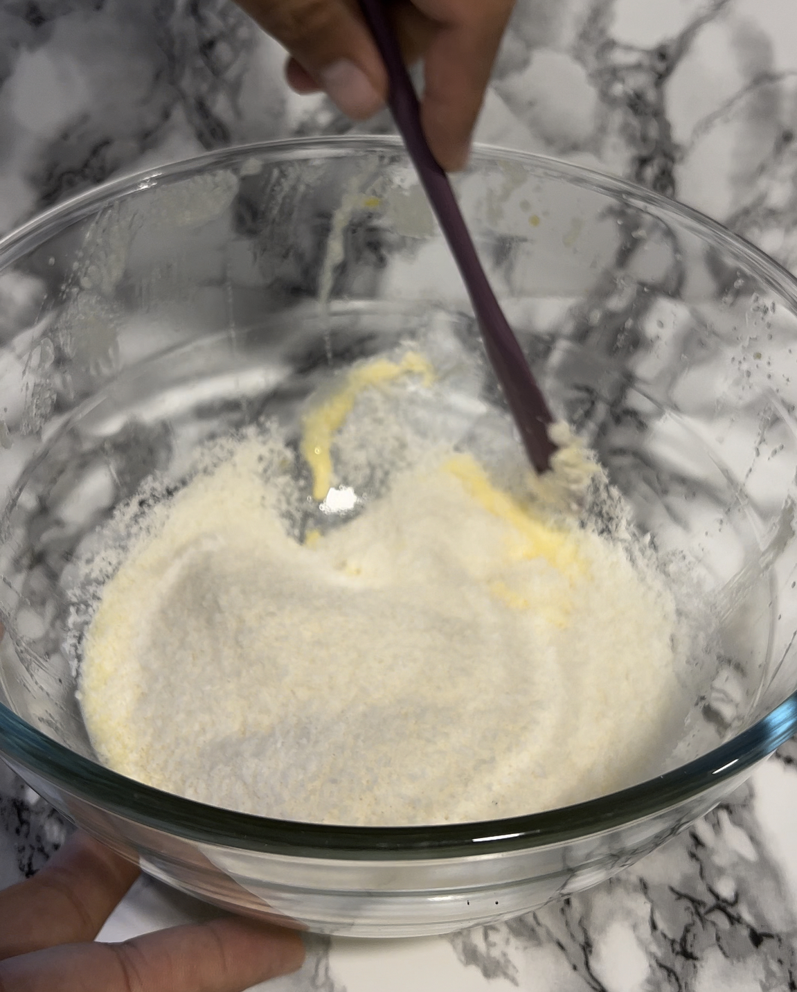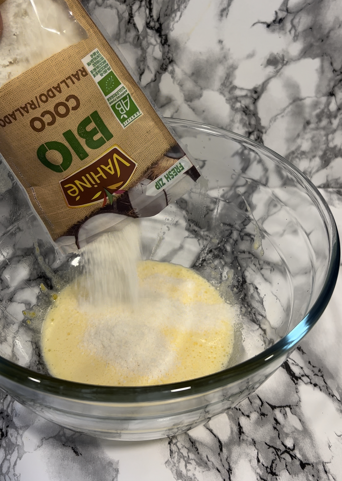 - Incorpora el coco y mezcla con la ayuda de una lengua.