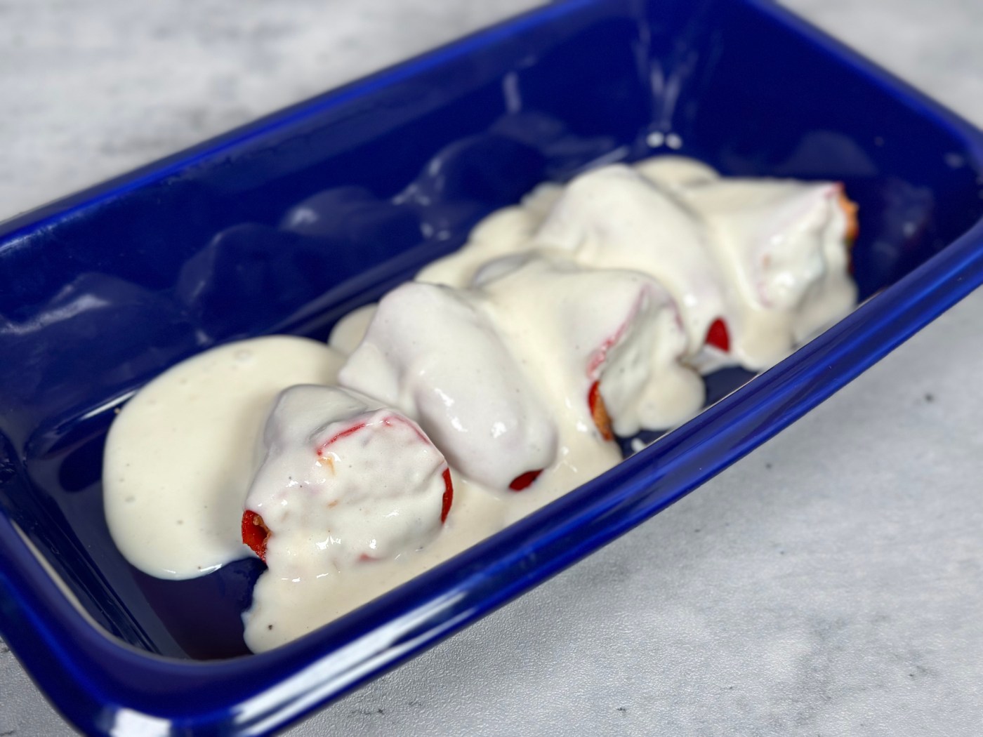 - Cubrir los pimientos con la bechamel y hornear 8 minutos a 180°C (356°F).