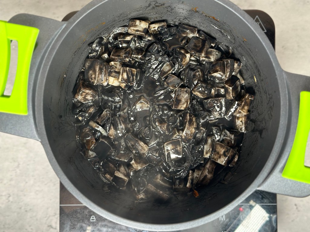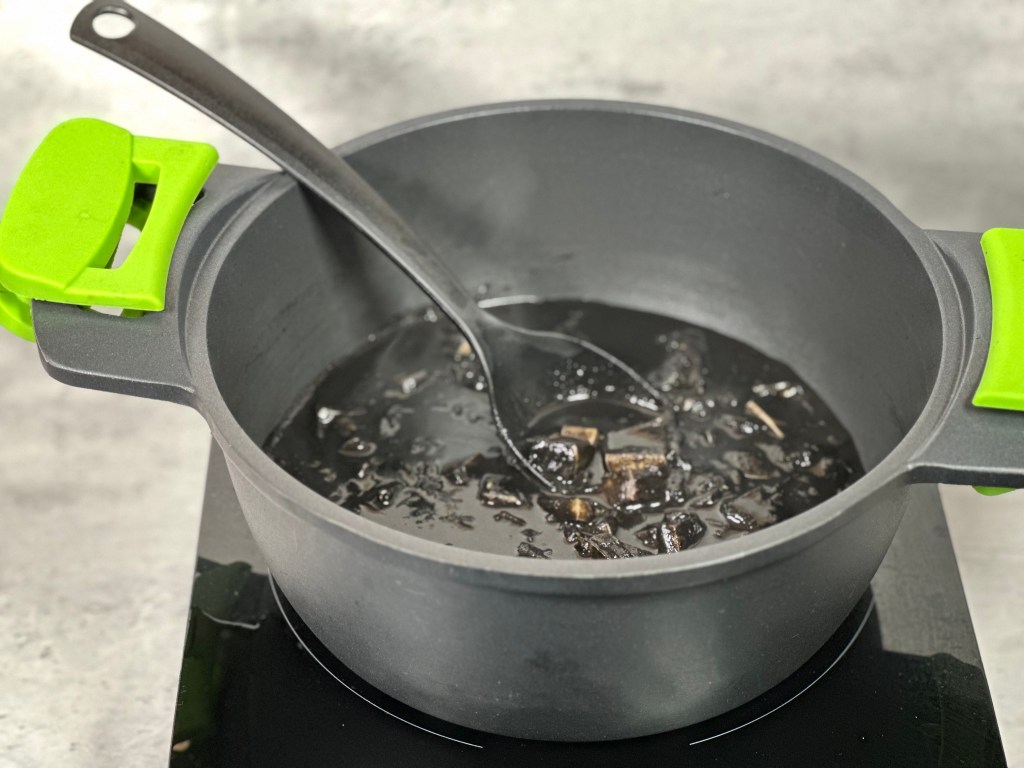- Incorporar la tinta de calamar y mezclar.