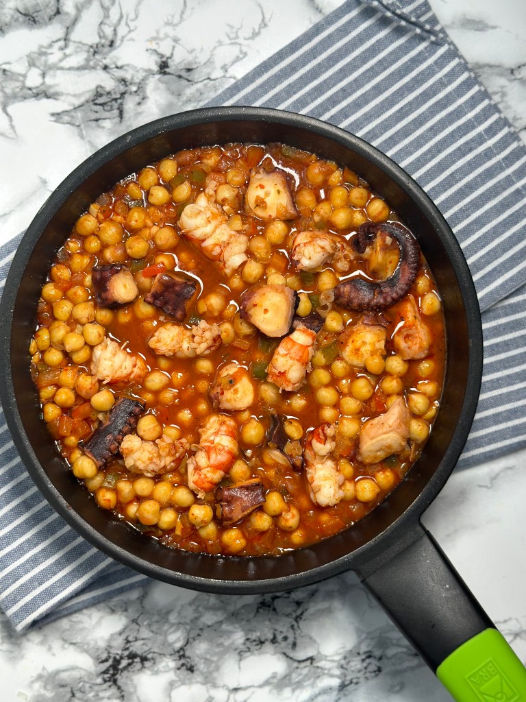 Esta receta de garbanzos con pulpo y langostinos es un auténtico festín para los amantes de la buena cocina. ¡Prepara tus sentidos para un viaje culinario inolvidable con esta deliciosa fusión de ingredientes y tradición!