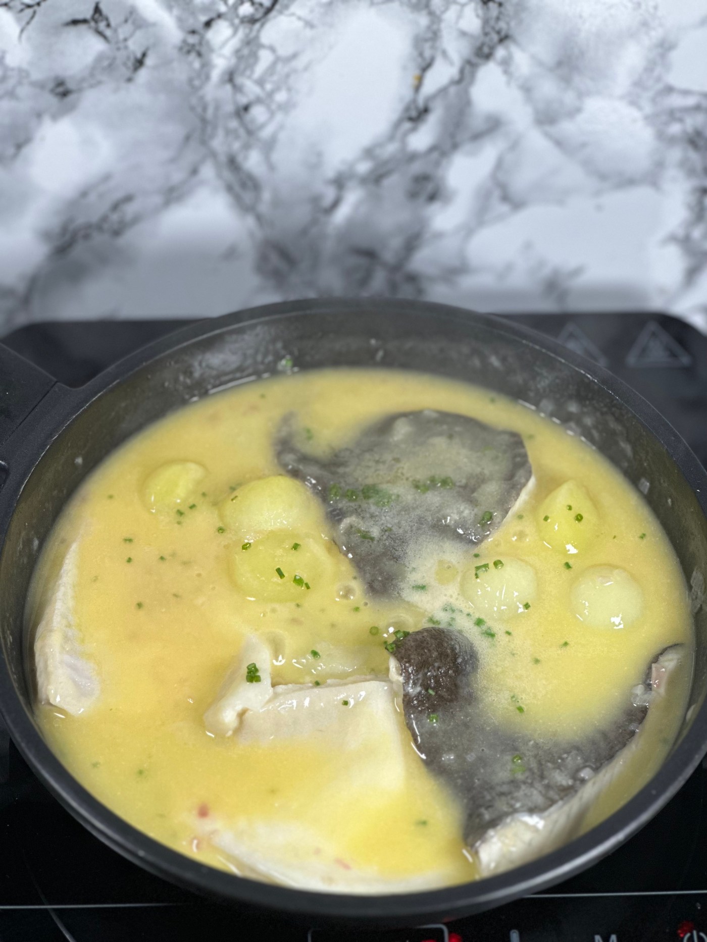 - Colocar el pescado y dejar cocinar 2-3 minutos con las patatas.