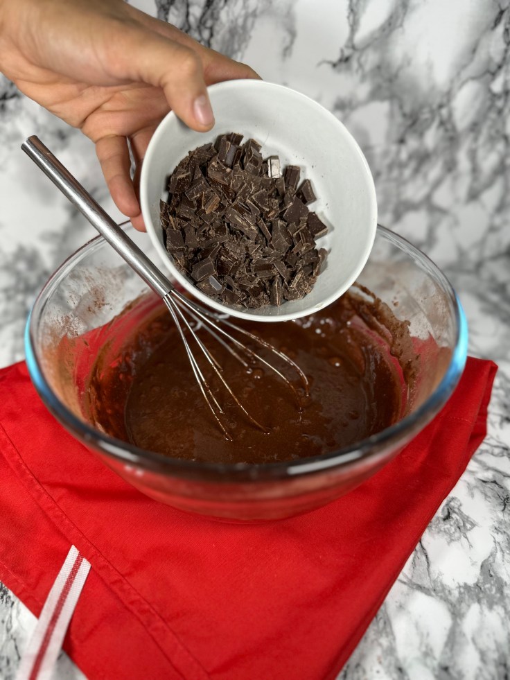 - Añadir la harina y el cacao tamizado.
