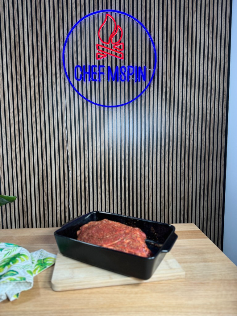 - Coloca la carne en una bandeja de horno, sazona con pimienta recién molida y cubre con la mezcla de especias. Masajea bien la carne con el adobo y déjala reposar tapada en la nevera durante 12 horas para que se impregne del sabor.